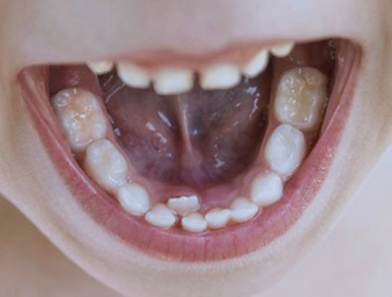 2. Si el maxilar o la mandíbula no tienen el desarrollo adecuado, el diente permanente puede erupcionar por detrás (muy común en incisivos inferiores) o en posición irregular.